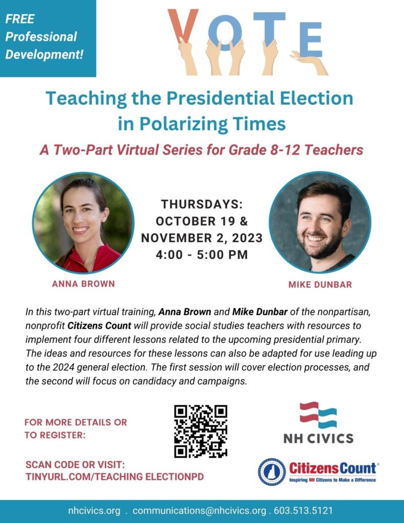 A Two-Part Virtual Series for Grade 8-12 Teachers made possible by Citizens Count. Thursdays October 19 and November 2 – 4:00-5:00 pm
